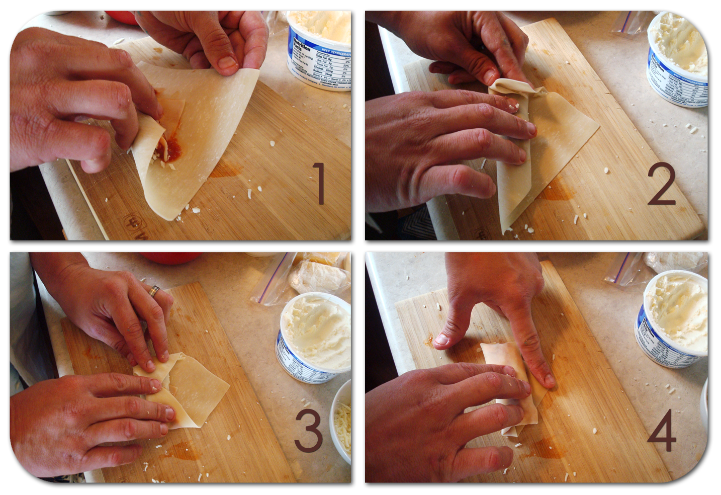 This recipe idea hit Ethan like a brick. Like woke him up in the middle of the night. He was hit by a brick in his sleep. Such a terrible way to get an idea. This was a brick telling him that an egg roll wrapper can house all sorts of delicious things. He didn't waste any time trying it out. And we enjoyed. And so did our neighbor who just happened to drop by at the exact right moment. Don't you wish you were my neighbor? In the words of the brilliant Usher, "Yeah".The title of this recipe was up for debate. What is your vote?